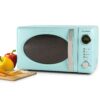 With a beautiful and sleek retro design, this Nostalgia Electrics microwave is sure to stand out in any kitchen.