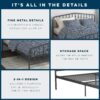– Sturdy construction: Strong metal structure creates a stable frame supported by center legs and a metal bar for superior stability. Premium powder coated metal finish provides a smooth and longer lasting finish that protects against corrosion, rust