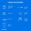 – Motor base, blade and lid, 20 oz. insulated cup, dual (sip & straw) to-go lid, blade cover, charging block, USB-C charging cable, iron & nylon cleaning brush, 10.5″ stainless steel angled straw