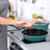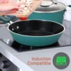 NutriChef 11 Piece Nonstick Elegant Lines Pattern Kitchen Cookware Set Teal
