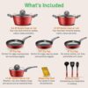 NutriChef Ridge Line Nonstick Kitchen Pots and Pans, 12 Piece Set, Red
