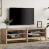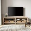 The oak wood grain and simple lines on this tv stand make it look classic and elegant. It can be not only used as televison stands, also perfect for sofa table, entertainment center, media stand, storage console table, tv console etc. This TV stand is perfect for TVs up to 75 inch TV.4 open shelves with big capacity allow you to storage the books, magazines, CDs and any other media or gaming devices. The media console table made of high quality MDF which is durable and sturdy enough to be used for a long time. Plus, four wooden legs further enhance stability, preventing the TV stand from wobbling. Max load capacity: 260 lbs. The oak entertainmen center for 75 inch tv with smooth surface is waterproof and easy to keep clean with a damp cloth. The tv table is 3.9 in high height off the ground which adequate for robot vacuum cleaner can passing freely. No more headaches from dust under the cabinet.