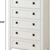 OKD 5 Drawers Dresser Chests for Home Bedroom, Farmhouse Wood Rustic Tall Chest of Drawers, Pull Storage Cabinet, off White