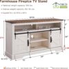 - Style: OKD Farmhouse collection barn door fireplace TV stand