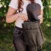 – Featuring an adorable Disney design, adjustable straps, a zipper closure, and an extra pocket for dry goods, this pebble faux leather backpack proves that fashion and function can go hand in hand
