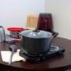 The Oster Cocina Clairborne 6 Quart Aluminum Hammered Tone Dutch Oven with Lid will create a sleek and dynamic look for your kitchen. This beautiful and long-lasting kitchen tool will allow you to cook and bake wonderful meals for family or guests, making it ideal for many dinner gatherings and events to come. Its nonstick interior makes cooking and cleaning easy while also allowing you to make healthier dishes and skip using any oils or fats. Never let heat escape from your culinary creations again with the help of the matching vented glass lid allowing for easy meal monitoring. The Clairborne will add a touch of elegance to your everyday meal prep routine.