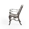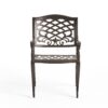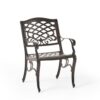 The Noble House dining set is a beautiful addition for your outdoor decor. Made from cast aluminum, the set includes four dining chairs and one mesh table. The features include a mesh back and seat rest and the table also features a patio umbrella opening. The antique bronze finish is neutral to match any outdoor furniture. Whether in your backyard, patio, deck or even your restaurant outdoor dining space, you’ll enjoy this set for years to come.