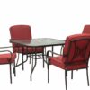Outdoor Patio Garden Furniture Augusta 5-Piece Dining Set with 4 Cushioned Chairs, 1 Square Dining Table – Red