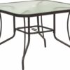 The 5-piece dining set beautifully transforms any backyard into an elegant outdoor dining area with a deep comfort feel, this patio set includes four cushioned dining chairs, four sets of back and seat cushions, and a 38-inch square dining table, the frames are made out of heavy-duty steel and finished with a brown powder coating, the tabletop contains a thick, tempered-glass for maximum strength outdoors.