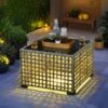Solar-Powered Glowing Coffee Table: The integrated solar-powered LED table charges during the day and illuminates automatically at night.Creates a warm and inviting atmosphere without the need for external power sources.Tempered glass tabletop that’s easy to clean and maintain.Perfect for late-night chats or entertaining guests