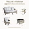Ovios 5 Pieces Outdoor Patio Furniture Set High-Back Rattan Wicker Conversation Set Outdoor Sectional with Swivel Chairs and Solar Light Coffee Table, Grey