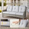 Durable All-Weather Rattan Wicker Construction: Made with a sturdy steel frame and hand-woven, weatherproof grey rattan wicker, this all-weather furniture is built to last.Weather-resistant furniture designed to withstand all seasons, making it ideal for outdoor lounge furniture arrangements. Plus, it’s low-maintenance, so you can spend more time relaxing and less time cleaning