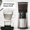 - Stainless steel conical burrs create uniform grounds for optimal flavor