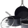This OXO Professional Ceramic Non-Stick cookware set was designed with a diamond-reinforced ceramic non-stick coating that delivers effortless food release with less oil.