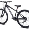 The 27.5″ Ozark Trail Vibe mountain bike hits the sweet spot with its capability, versatility, and affordability. Sporting a lightweight aluminum frame with a specially tapered headtube, this mountain bike is designed specifically for your trail-riding needs. The dual mechanical disc brakes give substantial stopping power during normal trail riding and deep descents. Knobby MTB tires and a front suspension fork let you tackle tougher terrain with ease. Quickly and smoothly transition through the 8 gears with the handlebar-mounted trigger shifters as you tear up the trail. Adjustability is key for a proper fit, so this unisex adult bike offers 3 distinct frame sizes all with adjustable saddle heights.