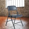 NPS comfortable 1200 Series premium upholstered folding chair is made with the combination of durable vinyl wrapped over 1.25 inch of soft foam on our most popular frame. This institutional-grade chair features our unique full-size double-contoured backrest, upholstered and firmly secured to the frame with six rivets. The powder-coated steel frame made from heavy-duty 18-gauge round tubing and two U-shaped double-riveted cross-braces to securely support the double-hinged legs. Color-coordinated V-tip stability plugs provide added reinforcement and matching replaceable glides prevent floor damage.