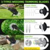 Versatile Cutting Options: Equipped with 3 types of blades – circular saw, plastic, and metal, suitable for cutting thick shrubs, soft grass, weeds, and small shrubs. Easily tackle various trimming needs with one tool. Ideal for versatile weeding tasks.