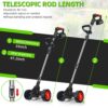 Ergonomic Telescoping Pole Cordless weed wacker with an adjustable telescopic rod, you can adjust according to your own needs and perform weeding work in a comfortable posture, effectively reducing back pressure. And telescopic rods can help you trim some difficult-to-reach areas. The angle of rotation of the machine head from 0 to 90°can be adjusted at will.