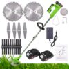 Weed & Brush Cutter 2-in-1 Cordless electric weed wacker equipped with 3 types of blades. Manganese steel circular saw blades: Suitable for cutting thick shrubs and branches. Plastic blade: Suitable for cutting soft grass. Stainless steel metal blades: Suitable for cutting thick weeds and small shrubs. You can trim edges on sloping terrain and reach hard-to-reach places with this trimmer. Made of high-quality materials, it is durable with high power.