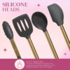 – SLIV IN THE KITCHEN: The utensils are all heat resistant to 400°F. The tongs, slotted turner, solid spoon and spatula feature silicone heads and are safe for use on nonstick cookware. Easy to clean, as this set is dishwasher safe. Toss them in the top rack and let your dishwasher do the dirty work.