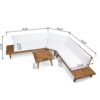 Park Outdoor V Shaped 4 Piece Acacia Wood Sectional Sofa Set with Cushions, Sandblast Finished, White