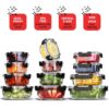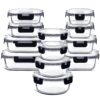 Phoenix Glass Food Storage Containers, Airtight Glass Meal Prep Containers, Reusable Leakproof Lids, Oven, Microwave and Freezer Safe Glass Storage Containers, 12 PC