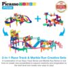 108pc 2-in-1 Marble Run Car Race Track Combo. PicassoTiles PicassoToys continues to be the market leader be the first to introduce the combo 2-in-1 set value pack to get double the fun from the popular marble run and race track series after being the first to introduce each of the model to the market. Scalable and expandable in both the marble run and race track to build and upscale the sim city. The race track and marble run set is expandable to build as big as desired by adding more pieces to the existing set. The 2-in-1 combo set can be integrated with other PicassoTiles PicassoToys building block toys such as people or animal action character figures, vehicles, airplane, Ferris wheel, windmill, castle, click-ins, numbers, alphabets, race tracks expansion packs to create infinite designs.