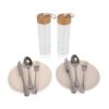 – 1 backpack (14.8″ x 5.9″ x 22.1″); 2 glass bottles (glass and bamboo, 2″ D x 8.25″ H, 15 oz); 2 plates (recycled plant fiber, 8″ D); 2 forks (stainless steel, 7.9″ L); 2 knives (stainless steel, 9″ L); 2 spoons (stainless steel, 7.9″ L)