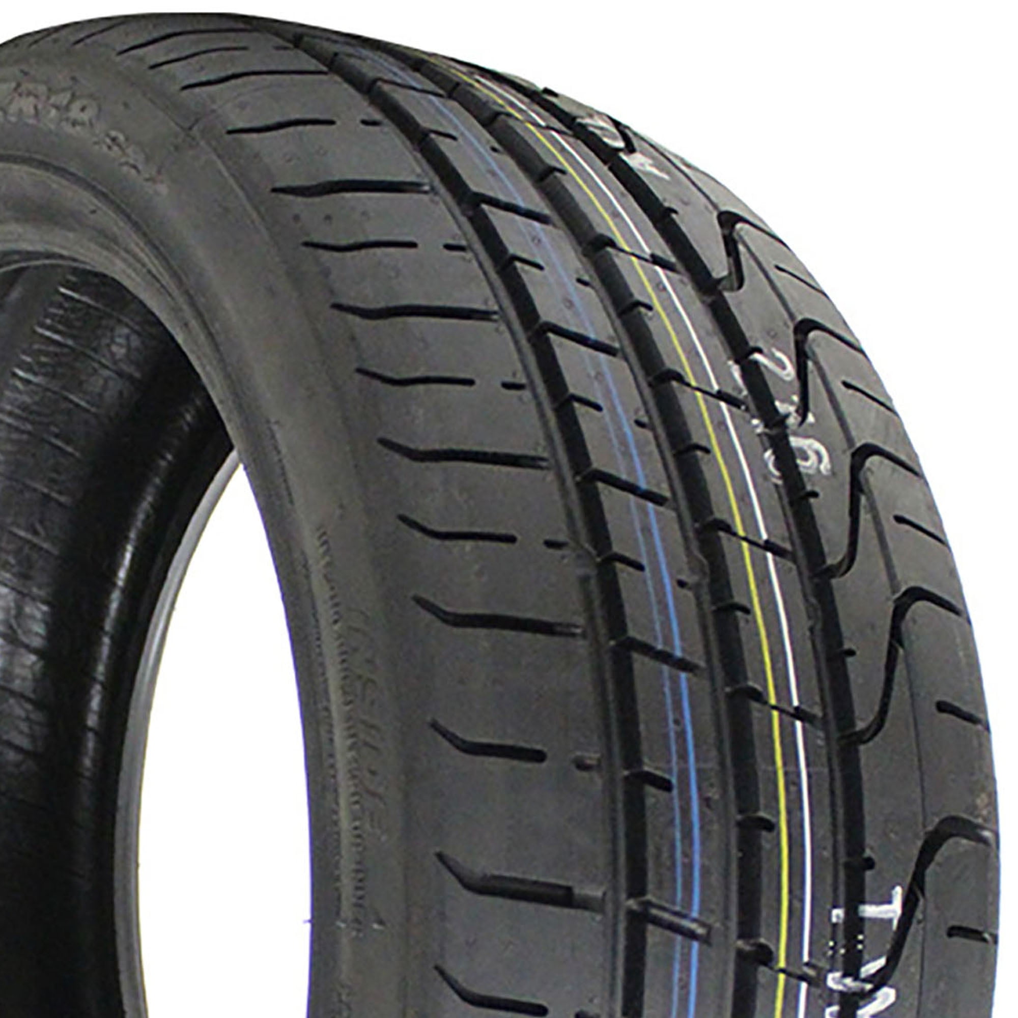 The race-inspired Pirelli P Zero is the tire you need for spirited, enthusiastic driving, as well as day-to-day commutes and road trips. The P Zero features a silica-enhanced tread compound for great grip in wet conditions as well as long wear. Wet-weather traction is enhanced by a set of circumferential grooves that channel water away from the tire’s footprint to resist hydroplaning, with S-shaped grooves toward the shoulder that aid in pressure distribution for cornering and braking. The P Zero’s tread and sidewall are rigid to resist high G forces (thanks to steel belts and a combination of polyamide and aramid cord), and Pirelli’s Noise Cancelling System (a layer of foam in the subtread) helps keep road noise low. NOTE: the Pirelli P Zero is a summer tire and not intended for cold temperatures, below 40-45 degrees F.