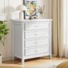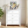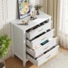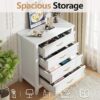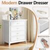 The PORKISS 4 white drawer Dresser features a modern, metal handle design with a sturdy wooden frame and elegant finish. Made from durable particleboard and waterproof material, it’s suitable for adults and teens. It offers 4 spacious drawers for ample storage and an anti-tipping device for safety. The 2 corners of the chest of drawers are equipped with anti-collision pads to ensure anti-collision safety. It is easy to assemble, with clear instructions and excellent after-sales support.