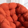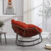 PORKISS Papasan Rocking Chair Indoor and Outdoor, Patio Rocker Recliner Chair with Padded Cushion, Modern Lounge Egg Chair with Steel, Rattan Frame, Orange