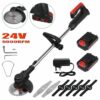 Portable Handheld Weed Lawn 24V Battery Cordless Grass Trimmer with Front U Shape for Lawn, Yard, Garden(Black, Set)