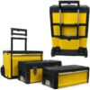 Portable Tool Box with Wheels – Stackable 3-in-1 Tool Chest – Foldable Comfort Handle and Tough Latches on the Mobile Tool Box by Stalwart