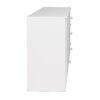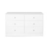 Add a timeless addition to your bedroom layout with the Prepac Astrid 6 Drawer Dresser. A sturdy profiled top, clean lines, profiled drawer fronts and crystal acrylic knobs amplify a contemporary design with a pristine white laminate finish, making this a perfect dresser for the bedroom to complement any decor style. Sizeable and wide, this double-column dresser houses six full-size drawers for clothes, running on smooth roller glides with built-in safety stops to keep each drawer in place. This multi-drawer storage dresser is a space-saving clothes organizer for bedrooms, but it also makes for an excellent storage cabinet in your walk-in closet, living room, or entryway. The wide, flat top can also act as a TV stand or a display for small lamps, electronics, picture frames, jewelry boxes, and more. Made from a non-toxic, CARB-2 compliant laminated composite wood, drawer sides constructed of solid pine and a sturdy back panel, this dresser will reliably protect your clothing. This high-quality dresser ships flat packed and can be assembled in two hours or less. Measuring 16″ D x 47.25″ W x 28.25″ H with each deep drawer measuring 13.5″ D x 20.5″ W x 4.5″ H, this horizontal double drawer dresser is a must-have piece of bedroom furniture. Pair this all-purpose dresser with other items from the Astrid collection for a uniform bedroom set that accommodates your complete wardrobe.