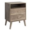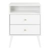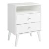 The Prepac Milo 2-Drawer Nightstand with Open Shelf is a modern take on a retro look, with a sleek mid-century modern design that adds a touch of vintage styling to your bedroom.