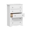 – ROBUST CHEST OF DRAWERS WOOD: Constructed from laminated, non-toxic composite woods, this durable chest dresser features bronzed knobs for a touch of elegance. The well-crafted drawers glide smoothly, coming with built-in safety stops.