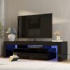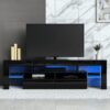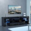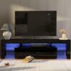 – ADJUSTABLE LED SYSTEM: This black TV stand has built-in durable, adjustable 16-color LED lights, easily changing the brightness or taking LED off/on by the remote control, giving your game, movie, or video an immersive atmosphere