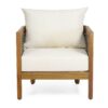 Rattler Acacia Wood and Wicker Outdoor Club Chair with Cushions, Teak, Mixed Brown, and Beige