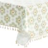 Rectangle Floral Tablecloth Faux Pu Table Cover With Tassels 55 X 79