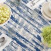 Rectangular Tablecloth, 100% Polyester, 60×120 , Blue Batik Stripe