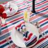 This patriotic stripe outdoor tablecloth is a perfect choice to protect your tables from any accidental spills or scratches. Be it outdoor or indoor this tablecloth are sure to impress your friends and family. Add a trendy look to your tables and bring in a perky dining experience. Features: Feature vibrantly colored patriotic striped design. The tablecloth has a 1 inch folded hem. Great for BBQ’s parties summer gatherings dinner with the family and more. Features an umbrella hole with zippered closure that zips on and off easily around patio table umbrellas. Recommended for outdoor use. Care instructions: machine washable gentle cycle tumble dry low and low iron if needed. Dimensions: 60 diameter. Material(s): polyester