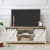 Reliancer Farmhouse TV Stand for TVs up to 65a , with Sliding Barn Doors, White