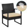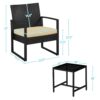 - Renwick 3-Piece Patio Set Rattan Chairs & Table for Outdoor, Black/Khaki: Materials: HDPE, Iron, 180g Polyester, Foam, Tempered Glass