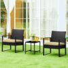 – Renwick 3-Piece Patio Set Rattan Chairs & Table for Outdoor, Black/Khaki: