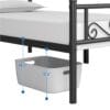 It features a beautiful metal scroll design on the headboard and footboard, creating a romantic ambiance in your home. Made of solid and durable metal, this bed frame has multiple support legs for stability. Thanks to the metal slatted structure, you can use it with various types of mattresses without needing a bulky box spring. The bed also has 12.6 inches of clearance underneath, providing extra storage space.Perfect for bedrooms, guest rooms, dorms, apartments, and more.