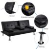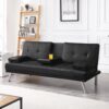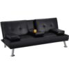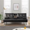 – Renwick LuxuryGoods Modern Faux Leather Futon with Cupholders and Pillows, Black: