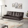 Renwick LuxuryGoods Modern Faux Leather Futon with Cupholders and Pillows, Black