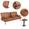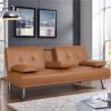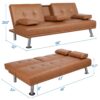 Renwick LuxuryGoods Modern Faux Leather Futon with Cupholders and Pillows, Brown