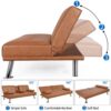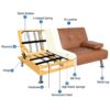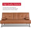 This sofa bed is made of high quality artificial leather with a sturdy iron frame. It can be transformed into a quick guest bed for visitors by removing the armrests and reclining the back rest. This futon is designed for comfort with ergonomic materials and a middle armrest that folds down with two cup holders. Find a friend to relax and enjoy a cold beverage with!It is ideal for small spaces, and well-suited for an apartment, studio, dorm room, living room, bedroom, etc. The modern yet transitional design makes it blends perfectly with any home decor style. Simple assembly is required and detailed instructions are included.