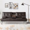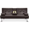 – Renwick LuxuryGoods Modern Faux Leather Futon with Cupholders and Pillows, Espresso: